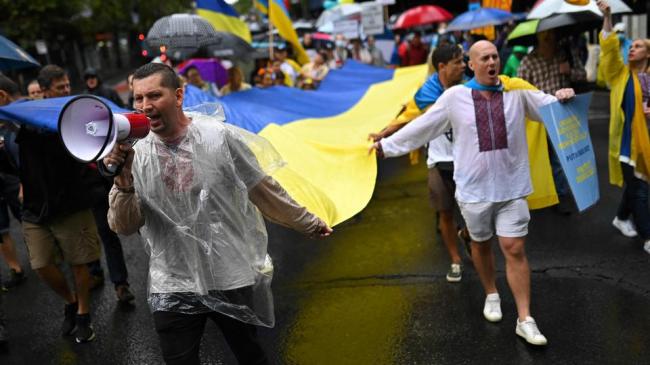 Кілька сотень людей пройшли в Сіднеї під проливним дощем у суботу, скандуючи «Україна переможе» та вимагаючи більше дій проти Москви.