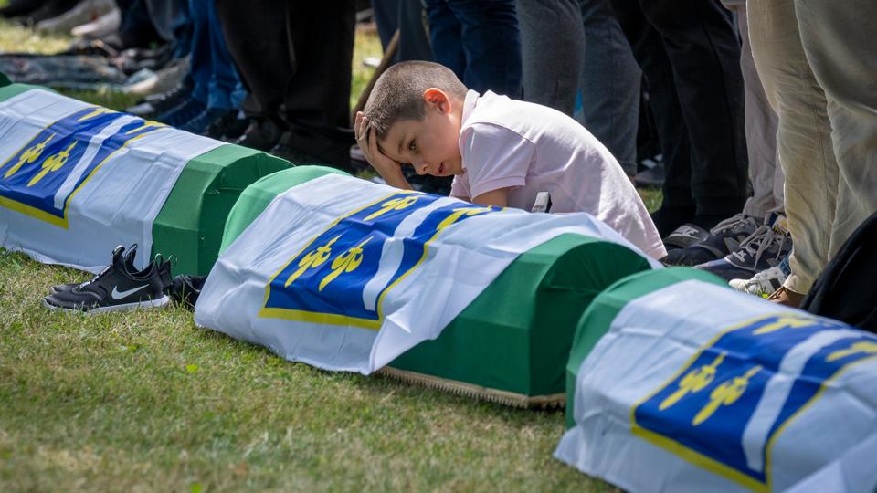 Про масове розстріл понад 8300 боснійських мусульман, більшість з яких чоловіків та хлопців, було відзначено в серії подій у неділю, після чого відбулося перепоховання жертв, останки яких були знайдені в братських могилах та нещодавно ідентифіковані за допомогою аналізу ДНК.