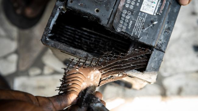 «Я готую [розплавлюю] частину свинцю і повторно використовую його в батареї, деякі інші частини викидаю», — сказав Сівамбаназа, переливаючи кислоту в пластикову пляшку, яку він згодом розбавить водою та використає для очищення підлогової плитки в своєму будинок в районі Лемба в столиці Демократичної Республіки Конго (ДРК).
