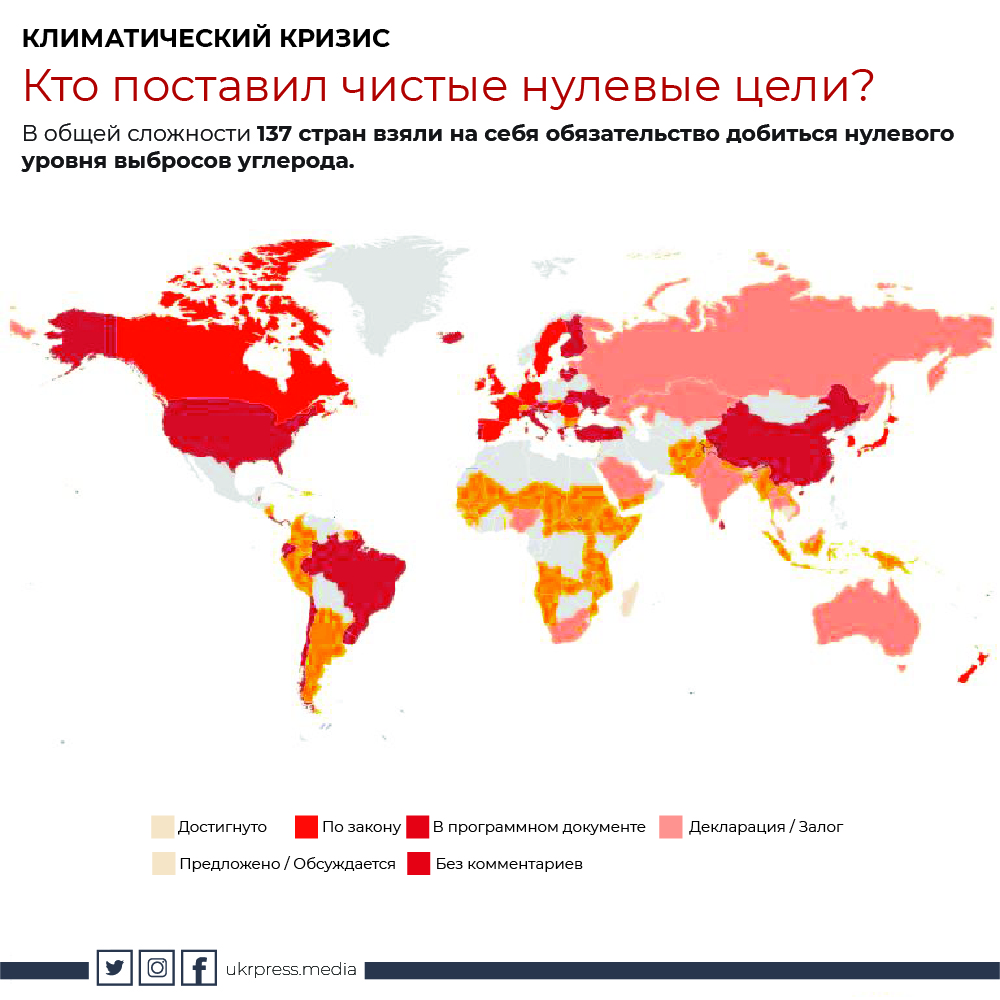 В общей сложности 137 стран взяли на себя обязательство добиться нулевого уровня выбросов углерода или быть нейтральными к климату, согласно данным Energy and Climate Intelligence Unit.
