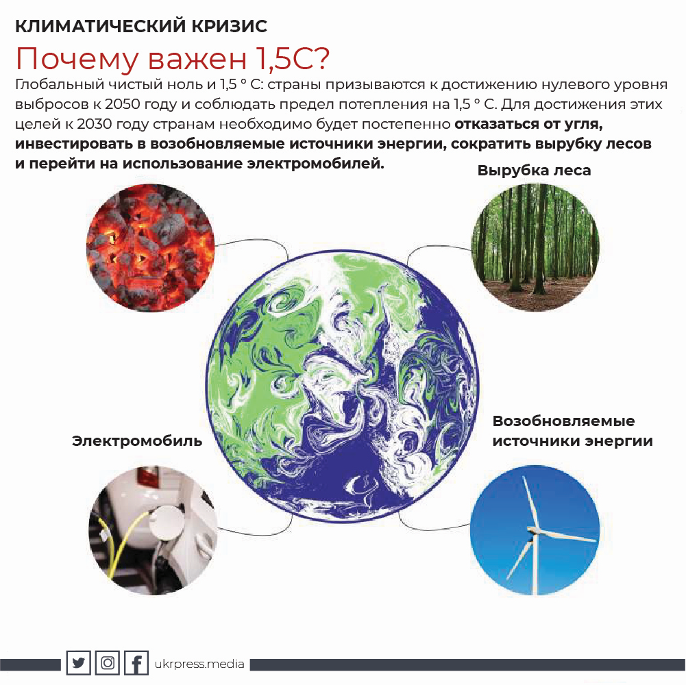 Глобальный чистый ноль и 1,5°C: страны призываются к достижению нулевого уровня выбросов к 2050 году и соблюдать предел потепления на 1,5°C. Для достижения этих целей к 2030 году странам необходимо будет постепенно отказаться от угля, инвестировать в возобновляемые источники энергии, сократить вырубку лесов и перейти на использование электромобилей.