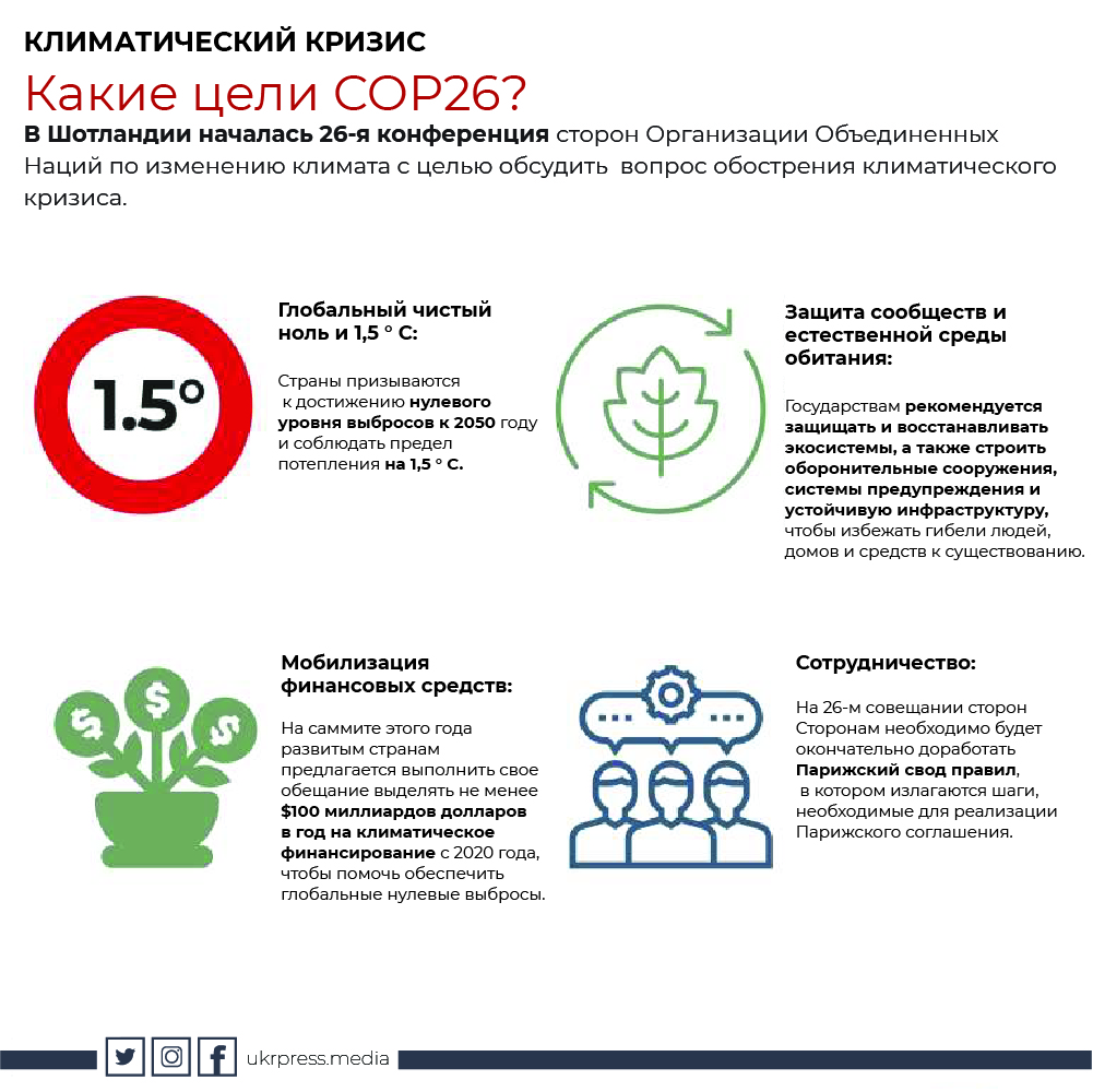 26-я Конференция сторон Организации Объединенных Наций по изменению климата (COP26) началась в Глазго, Шотландия, 31 октября. Мировые лидеры, климатические эксперты, активисты и финансисты обсуждали насущный вопрос обострения климатического кризиса до 12 ноября.