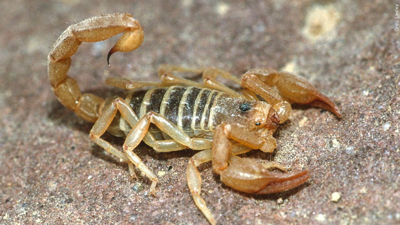 Скорпион имеет длину 8-10 см (3-4 дюйма) и полагается на вибрации и звук, чтобы определить местонахождение своей добычи, поскольку у него плохое зрение, слух и обоняние.