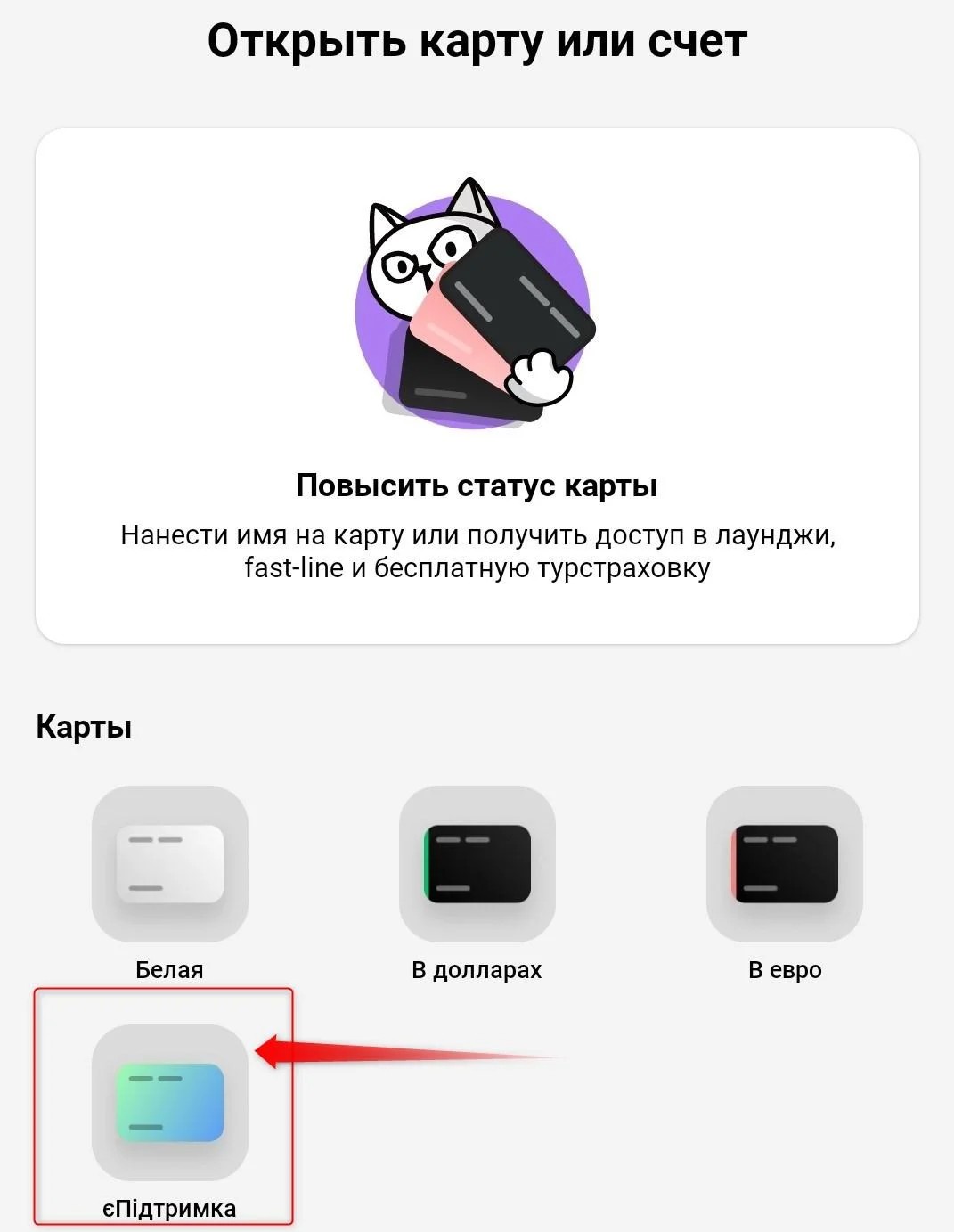 Как только вы это сделаете, вы попадёте в меню открытия новых карт, среди которых будет и карта "єПідтримка".
