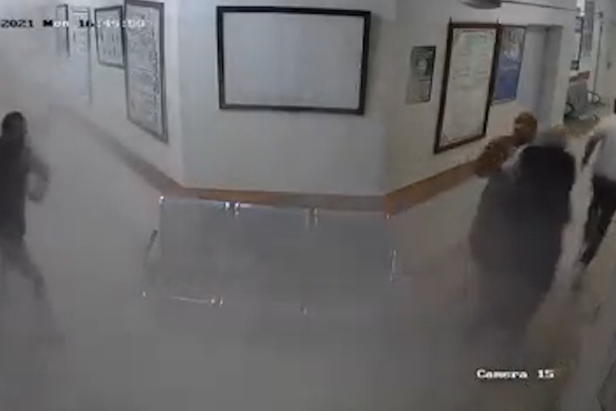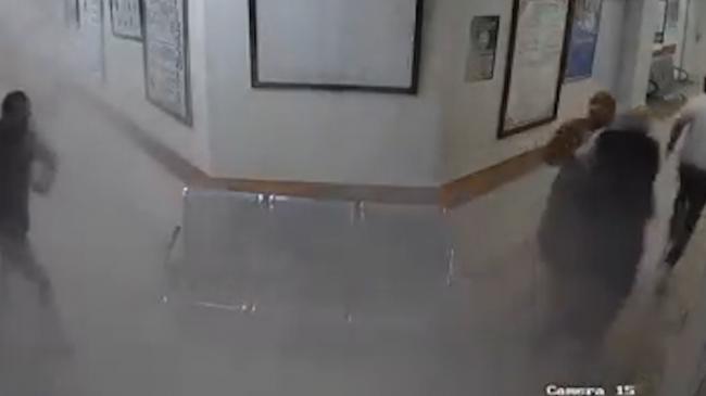 На кадрах видеонаблюдения от 17 мая видно, как люди бегут по коридорам клиники Аль-Ремаль, главной лаборатории COVID-19 в Газе, когда израильский авианалёт поражает соседние здания.