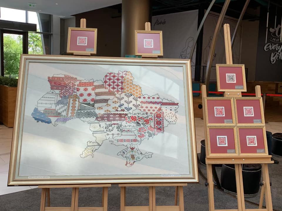 «Выставка организована по инициативе группы жен послов, активных участников Клуба исследования вышивки, который был основан женой посла Казахстана в рамках деятельности Организации жен глав дипмиссий. Клуб начал свою деятельность с 2017 года, поэтому сегодня каждая настойчивая участница не только создает шедевры из шелковых лент, мастерски умеет подбирать цветовую гамму для заветной картины или находит нужное качество нитей / тканей для пошива декоративных подушек, но и владеет несколькими техниками вышивки. Идея выставки возникла давно, но карантин внесли свои коррективы и вот наконец появилась такая возможность: представить рукотворные работы для осмотра, и еще в таком знаковом месте — центральной смотровой площадке Анкары — в башне Атакуле. Конечно, это событие без участия нашей страны было невозможно, потому что касается вышивки, нам конечно есть чем делиться с миром. Украина представлена вышитой картой, созданной в 2019 году при совместной координации и с участием группы этнографов и мастеров из Украины. Спасибо Лесе Воронюк, Творческой мастерской Лены Дидык, Сергею Бадюку, Маргарите Козинской, Марине Кравченко. Каждая область Украины представлена самобытным орнаментом в определенной цветовой гамме и в специфической технике вышивки, которые присущи каждому отдельному региону, не ограничиваясь лишь наиболее распространенным крестиком, включая разнообразие различных швов. Ну и конечно каждый посетитель украинского стенда в очередной раз убедился, как выглядит карта Украины — конечно, с Крымом! Еще одним ярким блоком презентации вышивки нашей страны стала экспозиция вышитых QR-кодов, созданных в рамках Международного художественного проекта «GLOW ART», авторства Татьяны Протчевой. Спасибо, пани Татьяна, с удовольствием вышиваю присланные Вами коды! Сканируя мобильным телефоном украинскую вышивку, посетители могут полюбоваться «Цветами Украины», почувствовать зажигательнрый ритм «гопака», узнать о крупнейшем в мире самолете «Мрия», послушать украинский и турецкий гимны и даже совершить виртуальное путешествие в Украину», — пишет Татьяна Сибига.