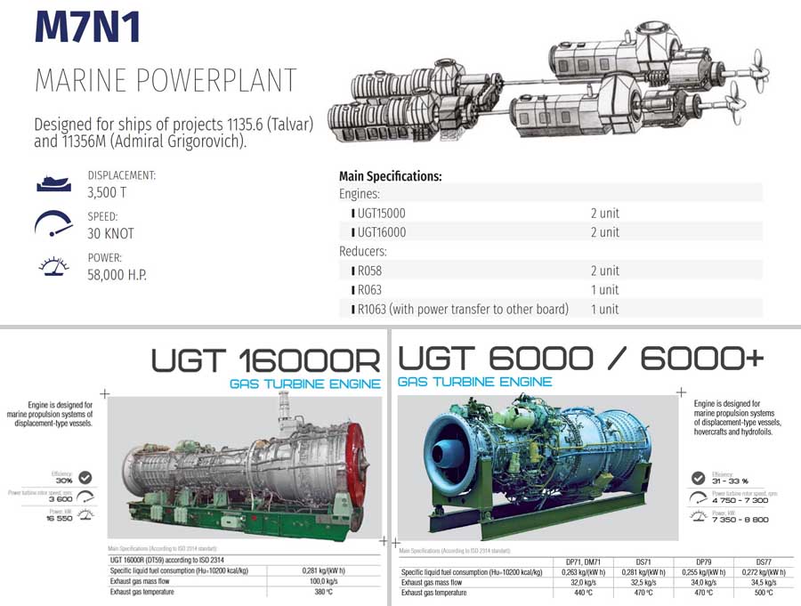 Установки М7Н2 имеют модернизированную микропроцессорную систему управления, мощность 58 тыс. лошадиных сил и предоставляют возможность развивать скорость в 30 узлов.