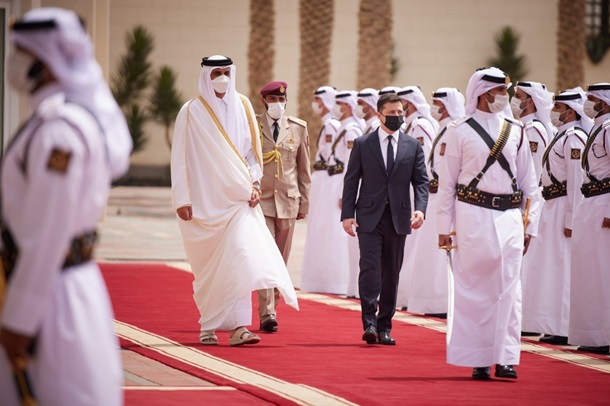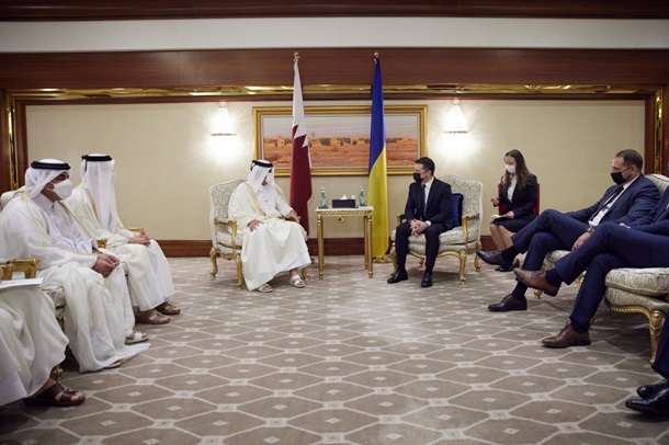 В рамках официального визита в Государство Катар 5 апреля 2021 Президент Украины Владимир Зеленский встретился с Эмиром Катара Тамимом бин Хамадом Аль-Тани. Во время разговора стороны обсудили ключевые вопросы двусторонней повестки дня, взаимодействие в рамках международных организаций и актуальную международную и региональную проблематику.